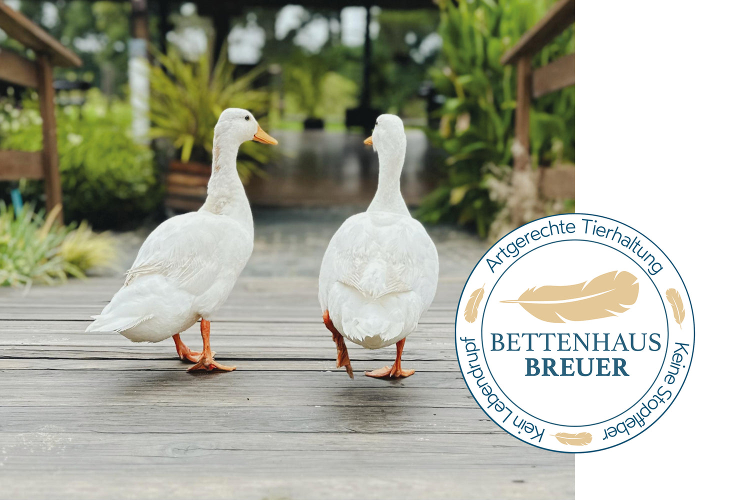 Aus Achtung und Respekt vor dem Leben werden in unserem Online-Shop keine Daunen und Federn von lebend gerupften Tieren angeboten.