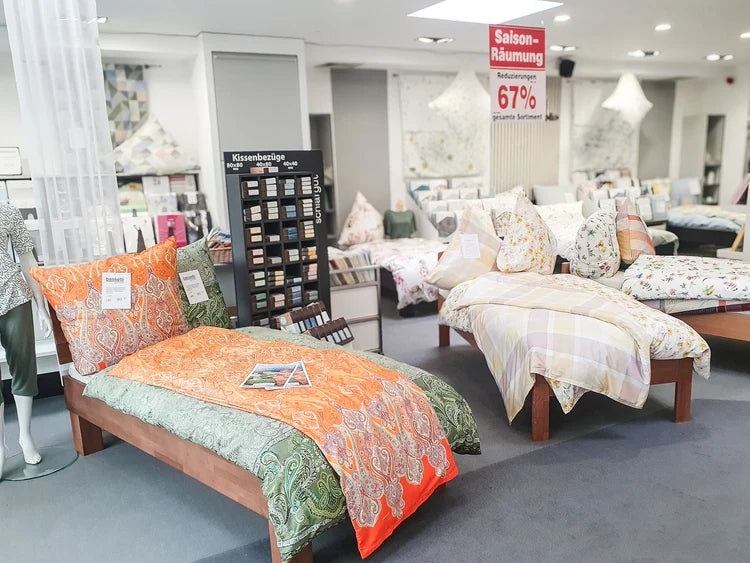 Auf über 1500 m² bietet unser etabliertes Betten-Fachgeschäft eine vielfältige Auswahl an hochwertigen Produkten, von Bettwaren über Heimtextilien bis hin zu attraktiven Lifestyle- und Geschenkartikeln.