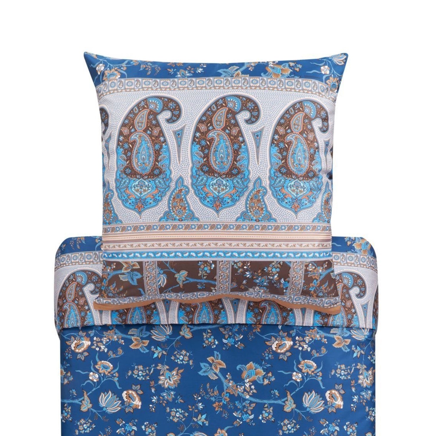 4 tlg. Bettwäsche Bassetti Mako Satin Genova B1 blau natur 135x200