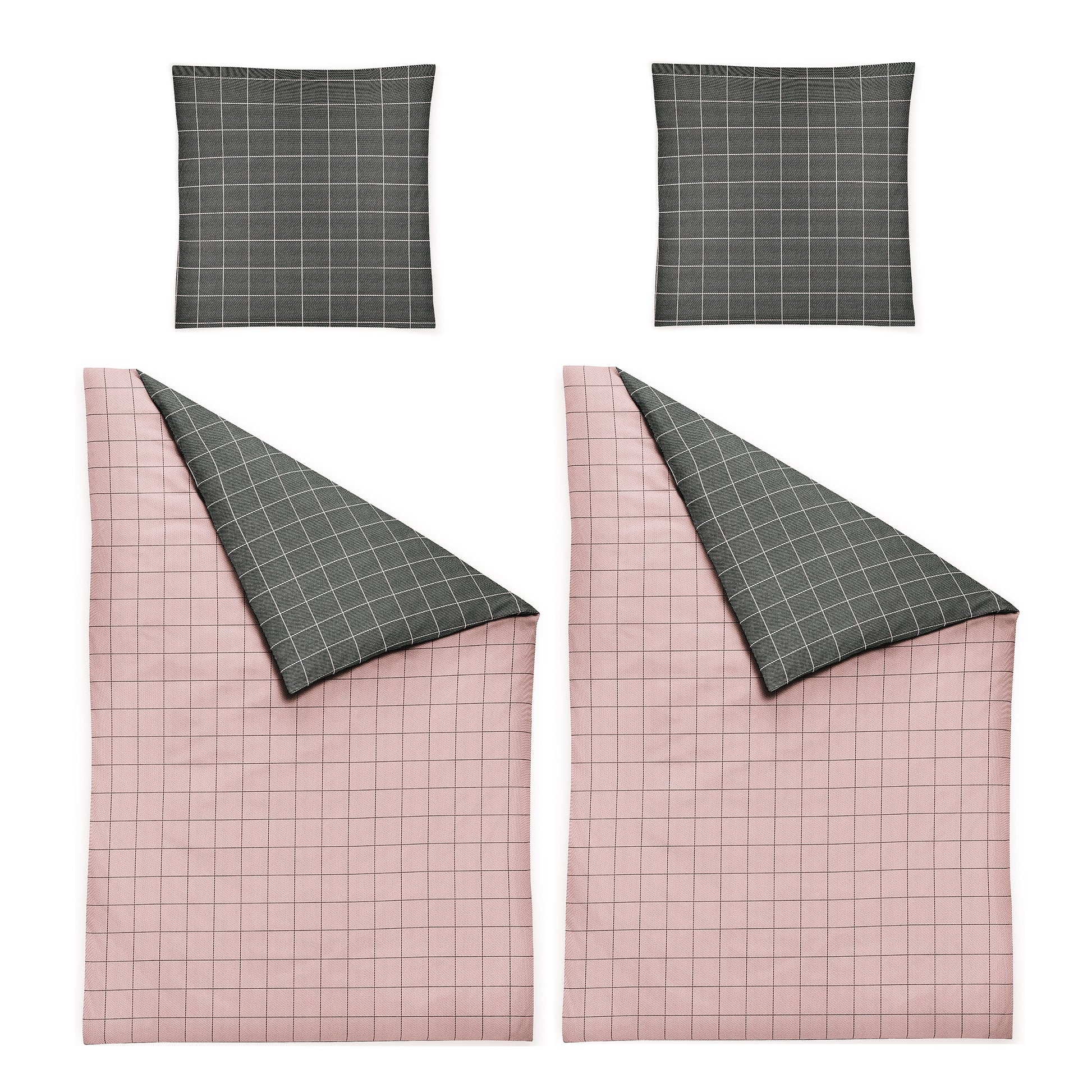 4 tlg Irisette Biber Bettwäsche Koala 8224-60 kariert grau rosa135x200