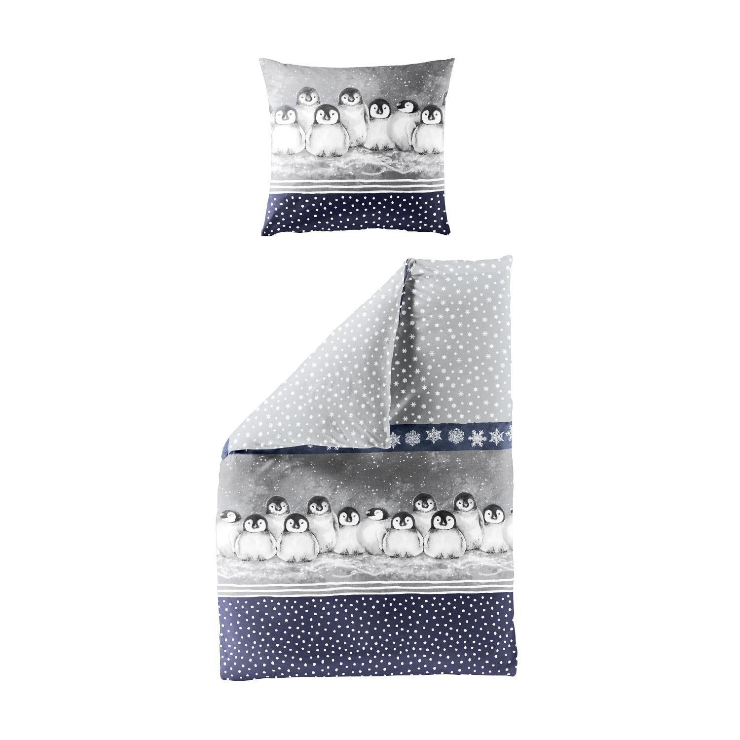 Bettwäsche Bierbaum Biber 3736-20 Pinguine Schneeflocken Grau 135x200