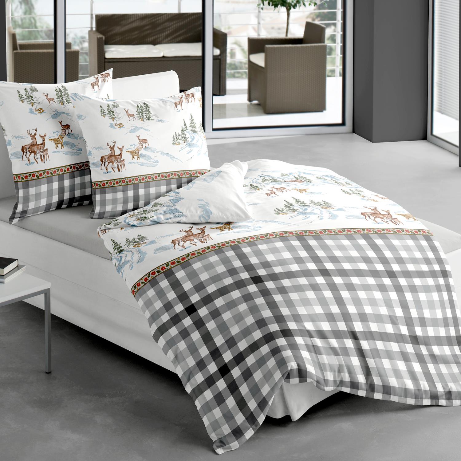 Bettwäsche Bierbaum Biber 4011-10 Winterlandschaft Kariert 135x200