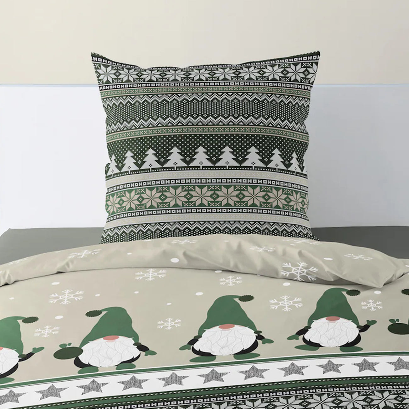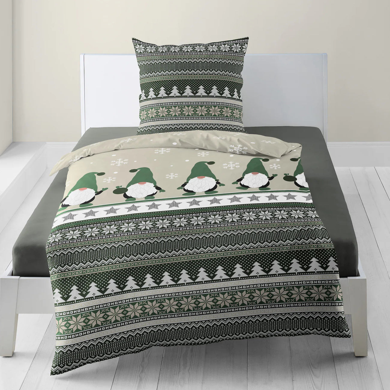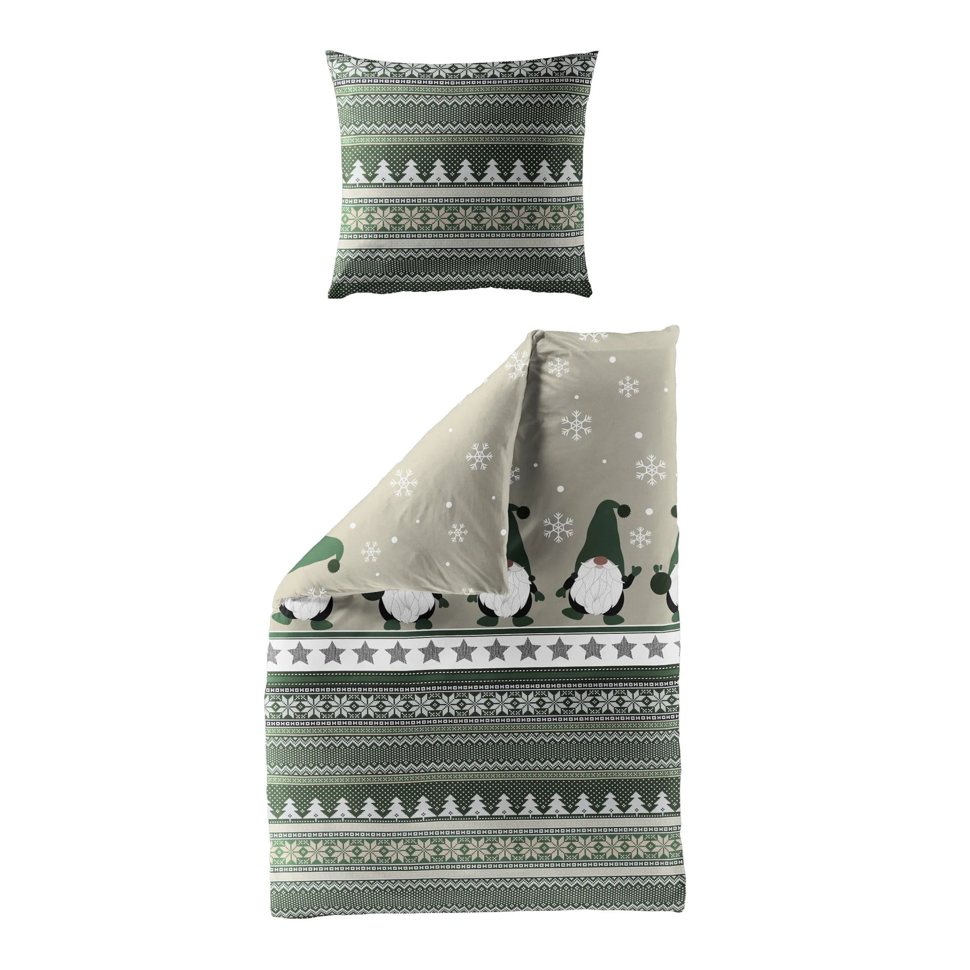 Bettwäsche Bierbaum Biber 4051-30 Wichtel Schneeflocke grün 135x200