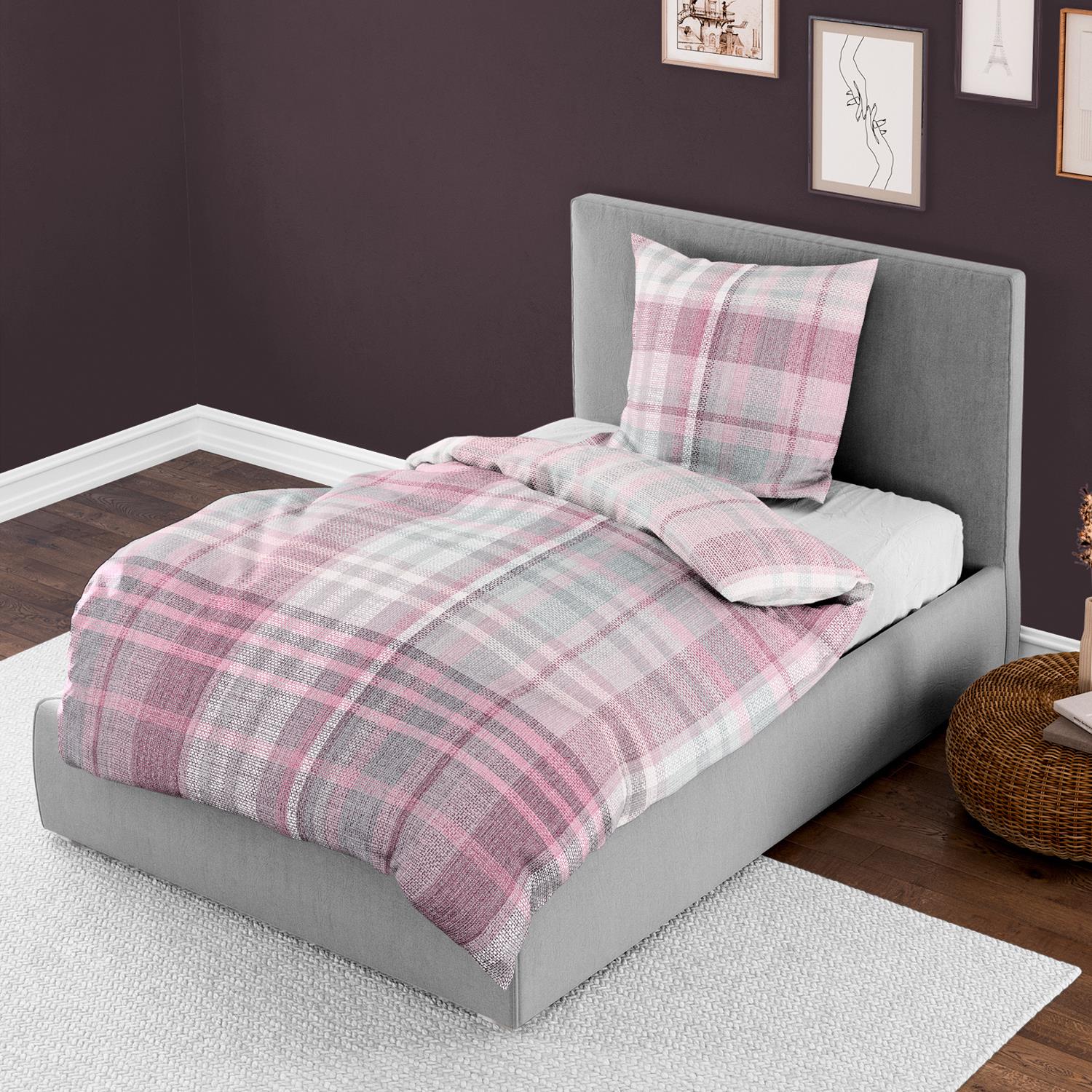 Bettwäsche Bierbaum Biber 4069-60 Kariert Rosa Grau 135x200