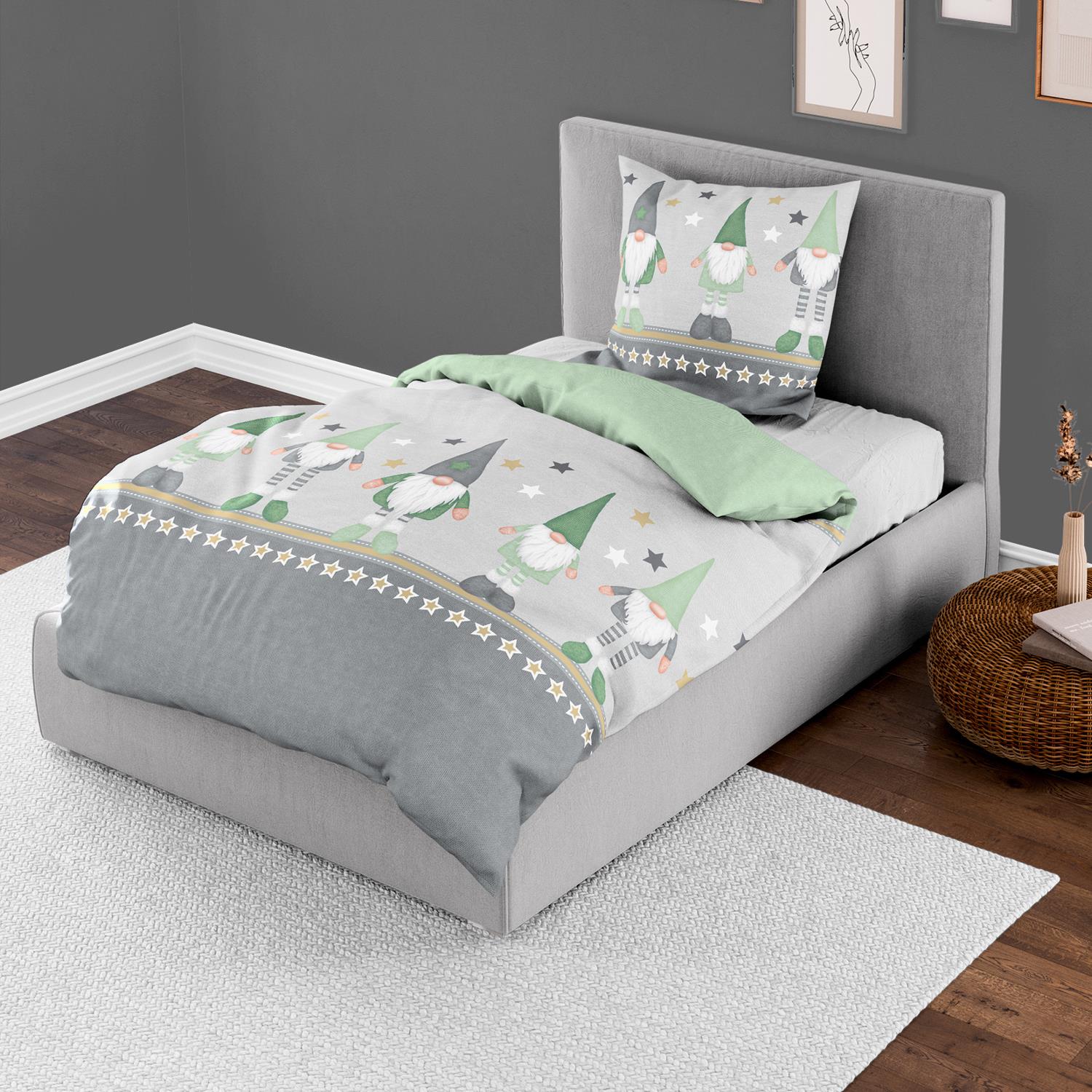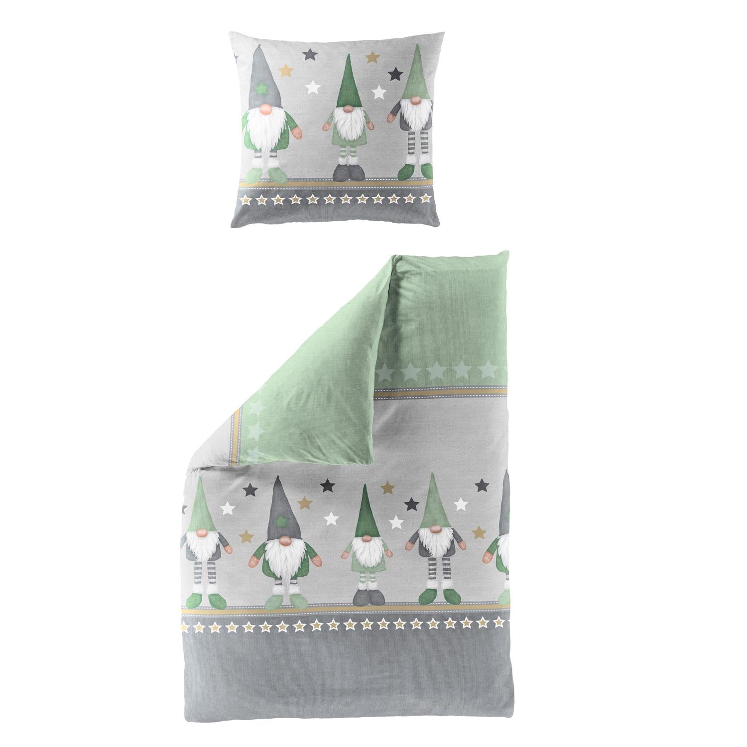 Bettwäsche Bierbaum Biber 4104-30 Wichtel Sterne Grau Grün 135x200