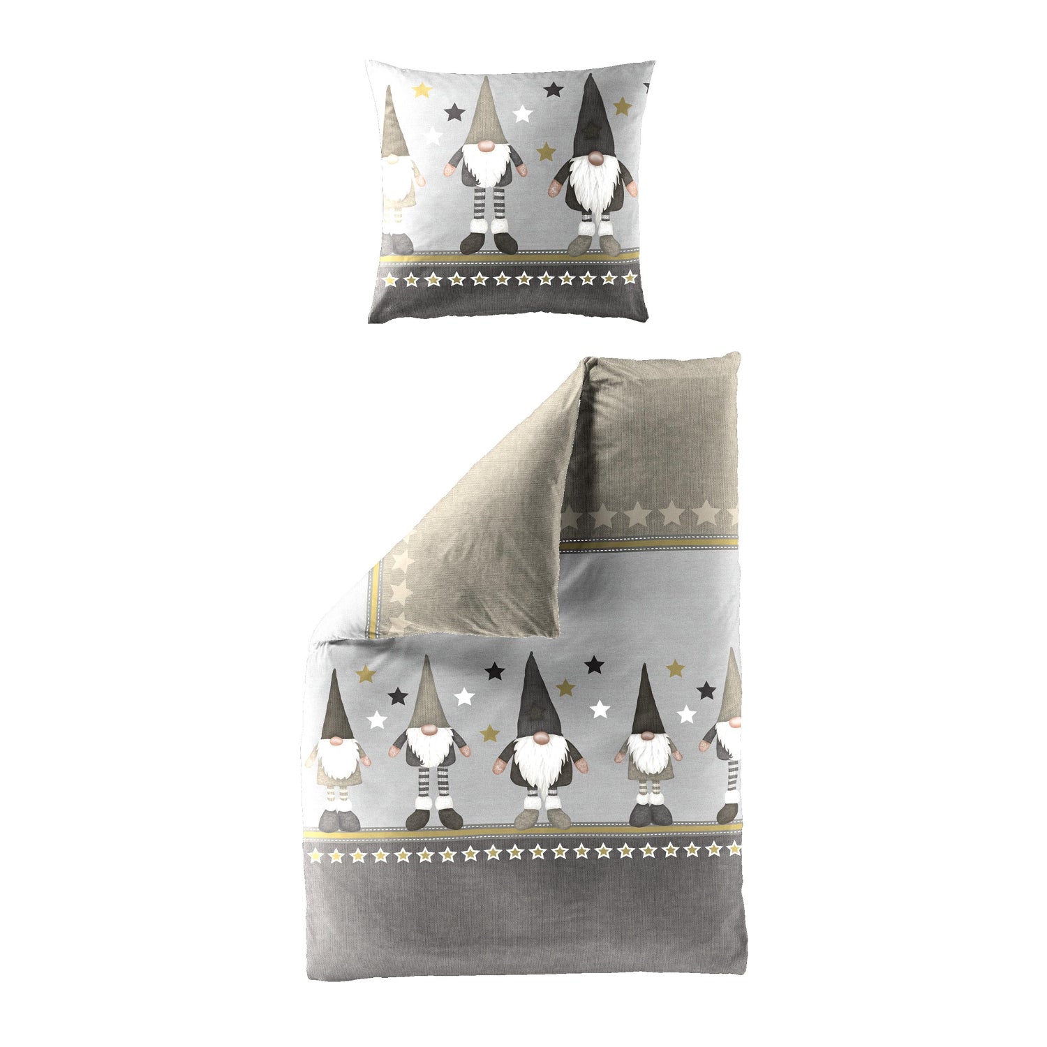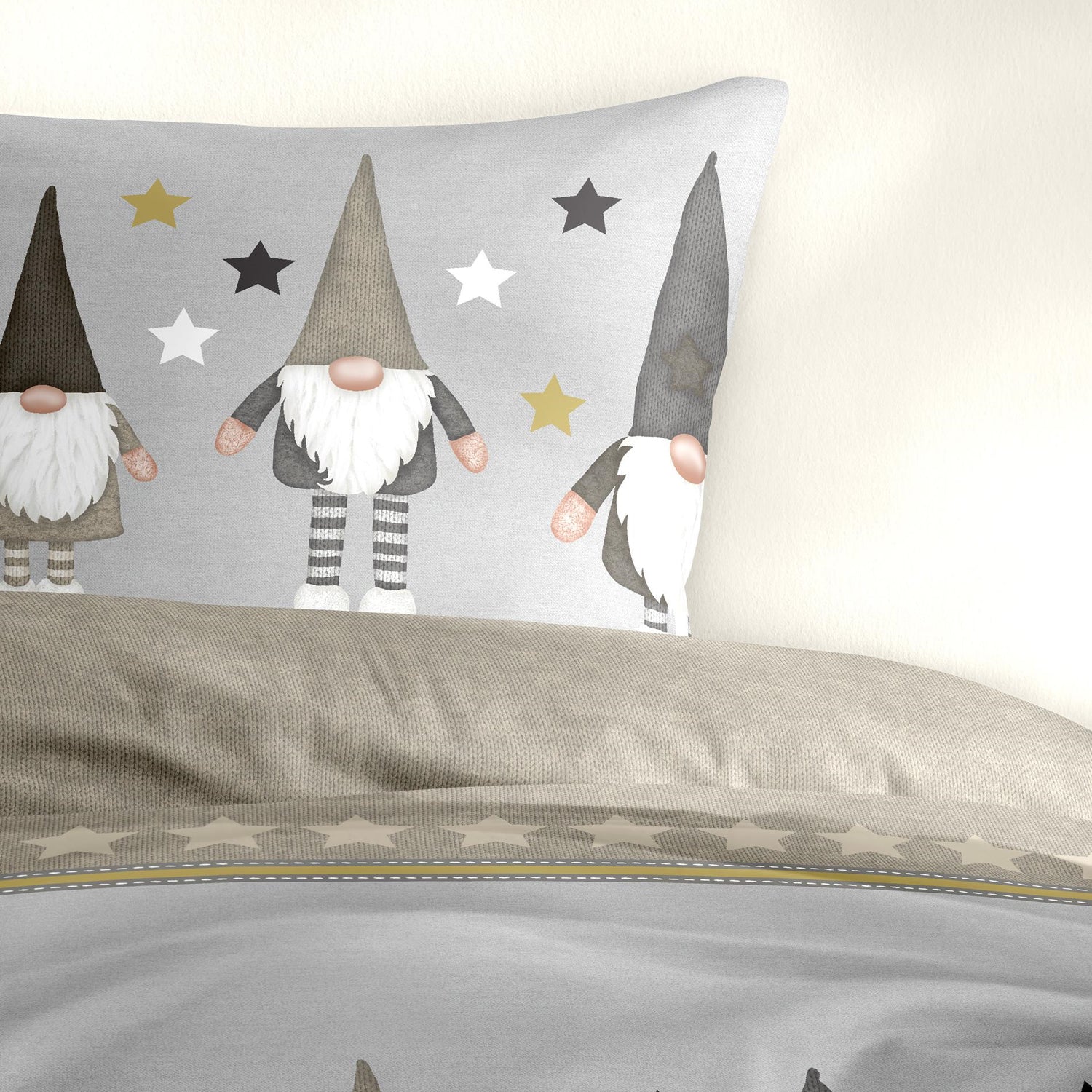 Bettwäsche Bierbaum Biber 4104-80 Wichtel Sterne beige grau 135x200