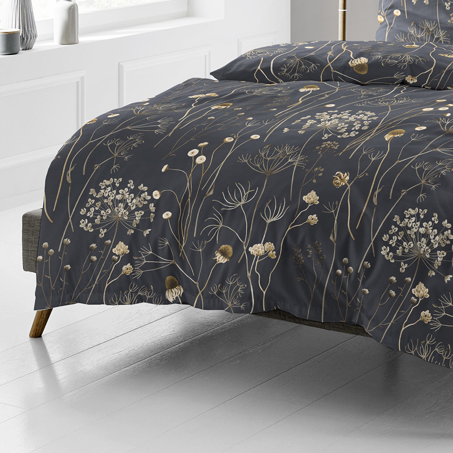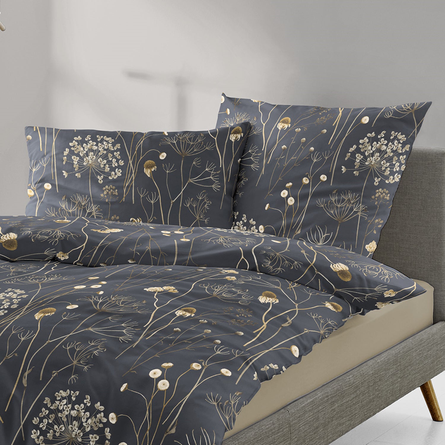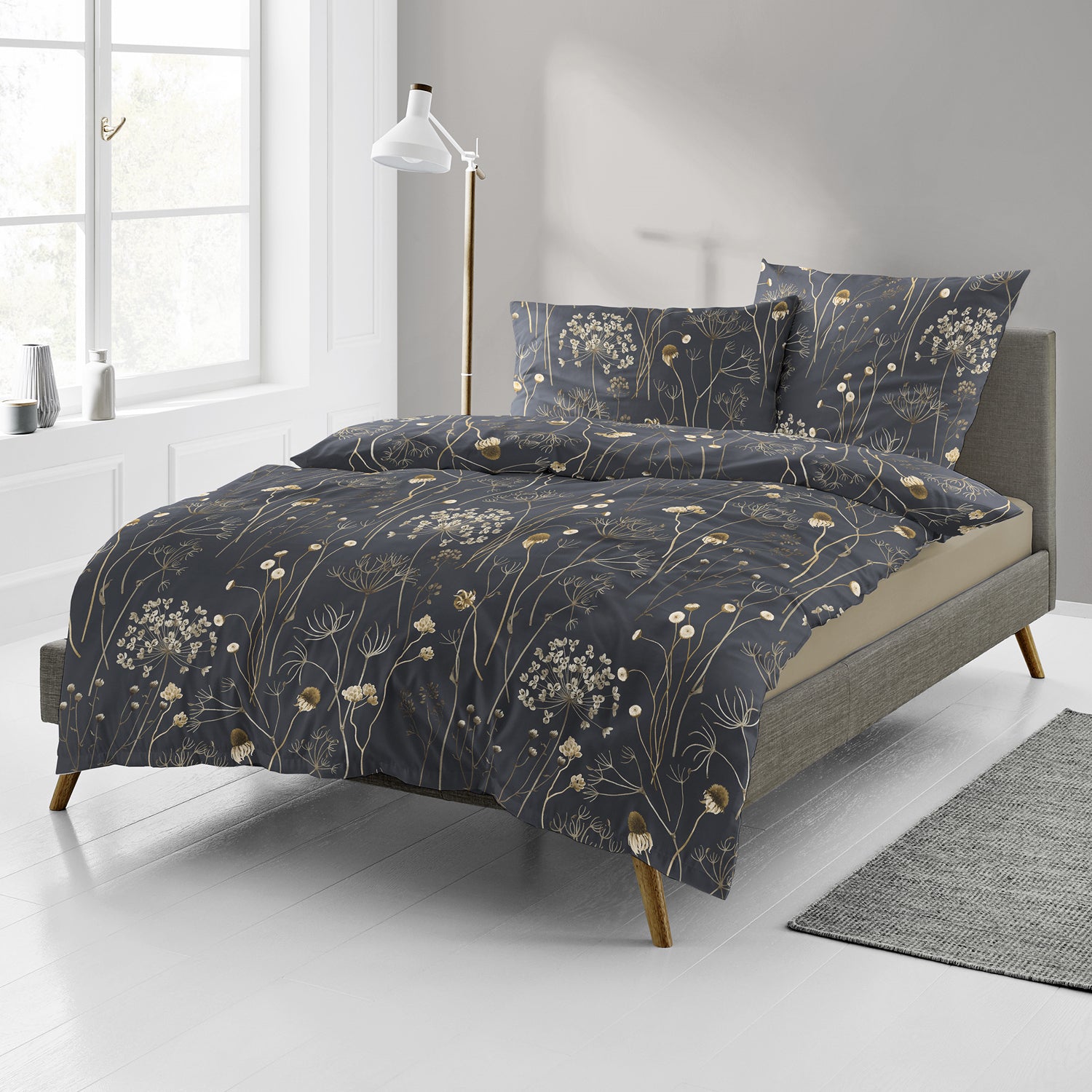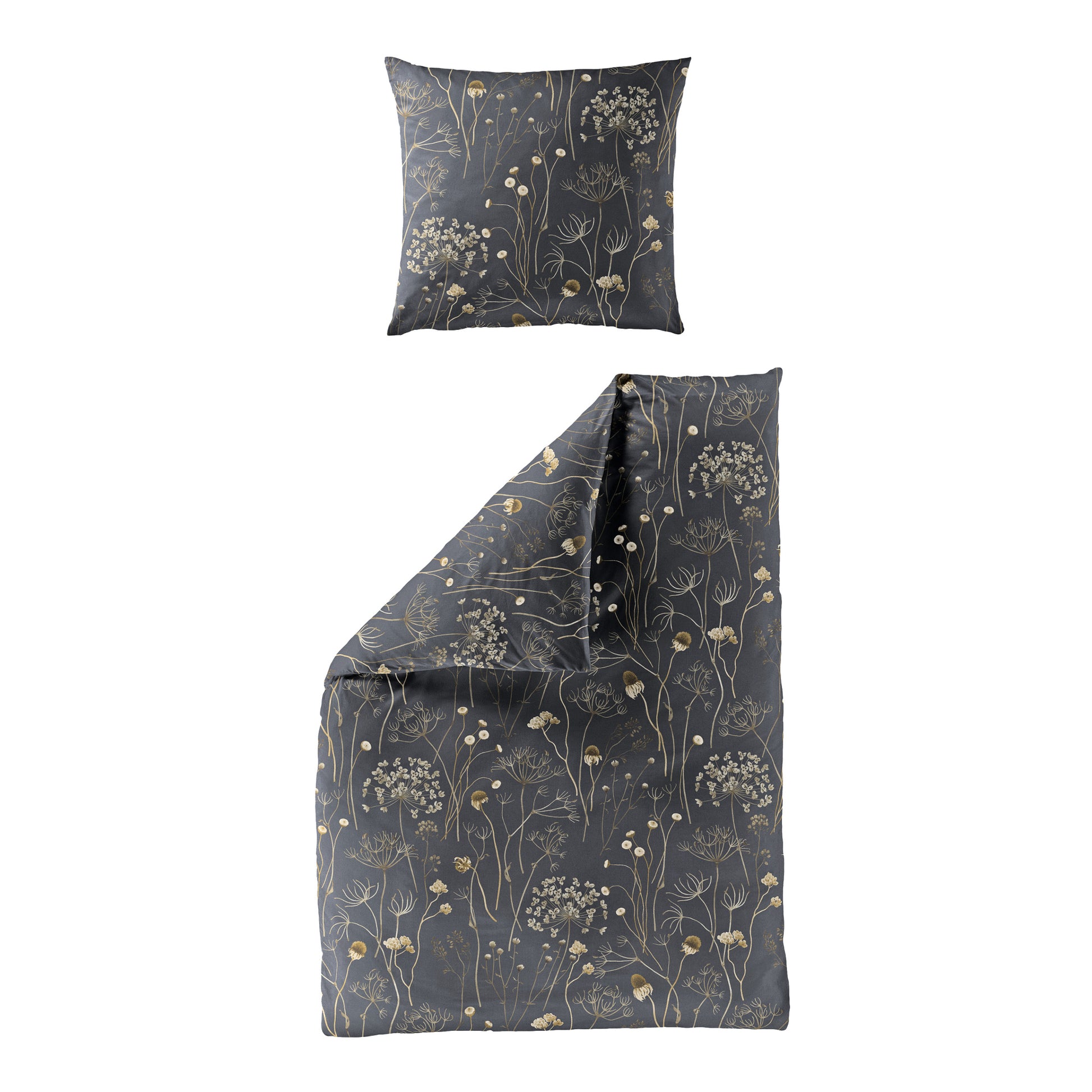 Bettwäsche Bierbaum Biber 4140-10 Blumen Zweige Anthrazit Sand 135x200