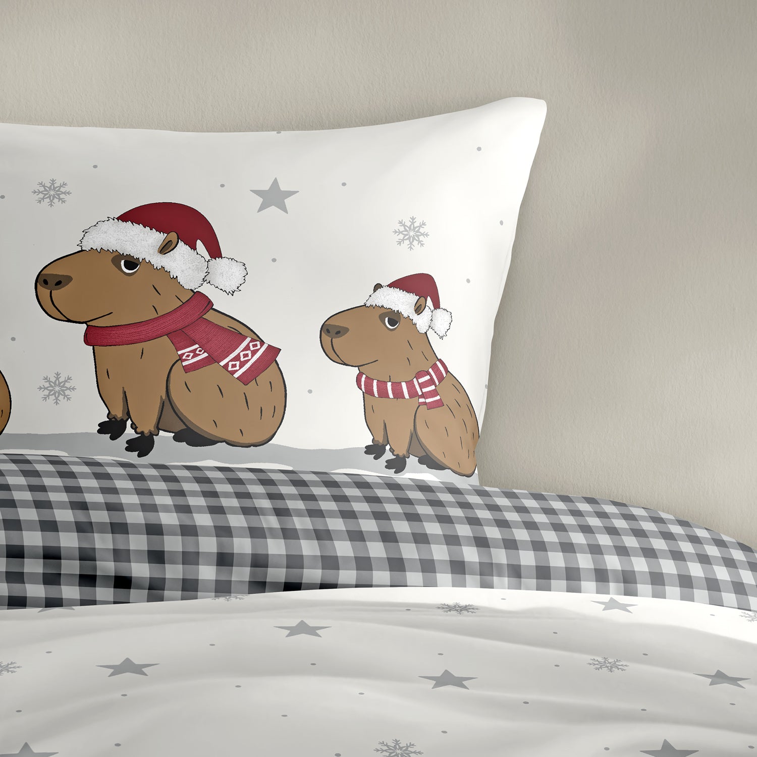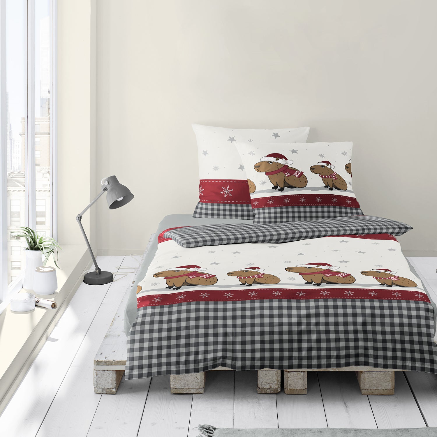 Bettwäsche Bierbaum Biber 4168-10 Capybara Natur Grau Rot 135x200