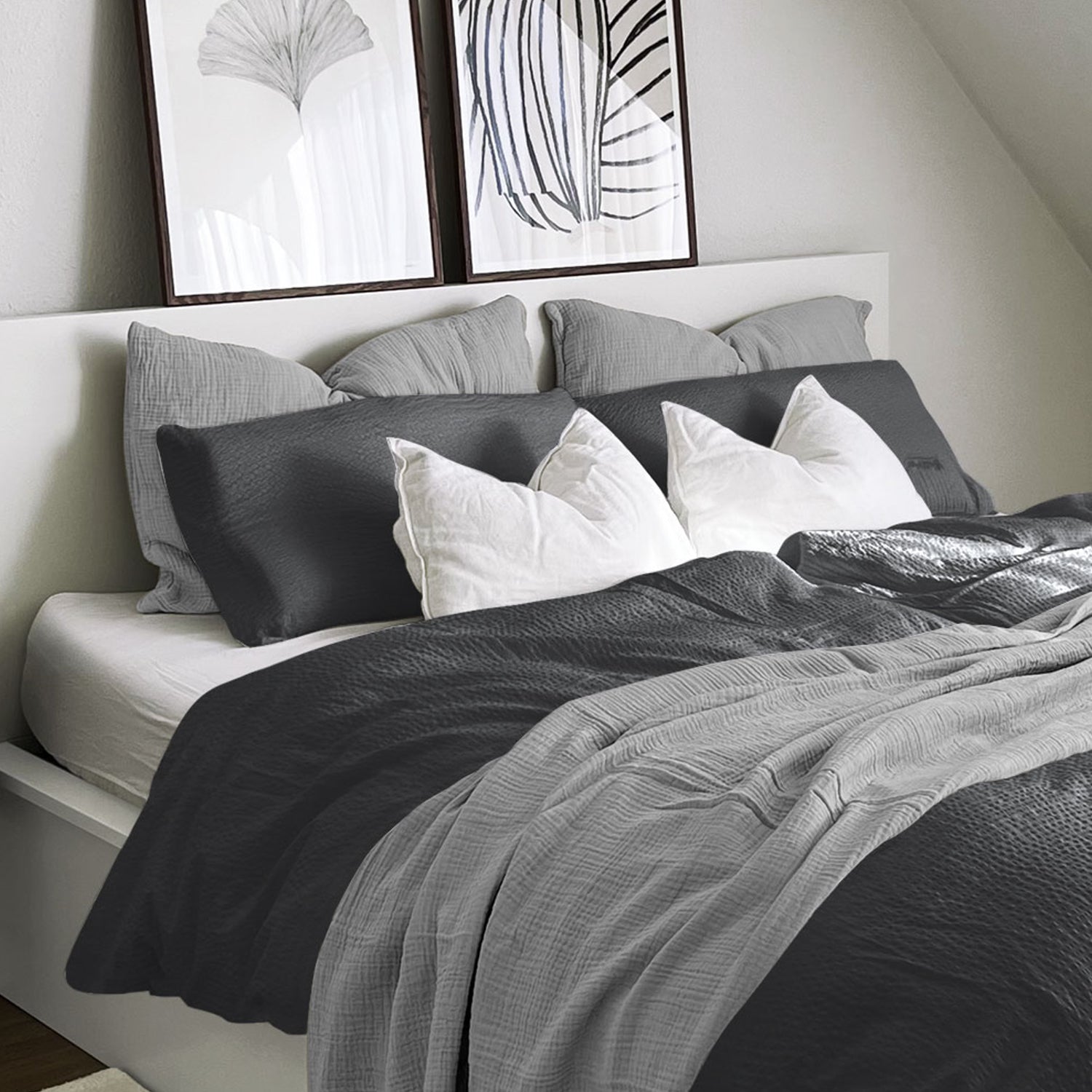 Bettwäsche Bierbaum Seersucker 3001-12 Unifarben grafit 135x200