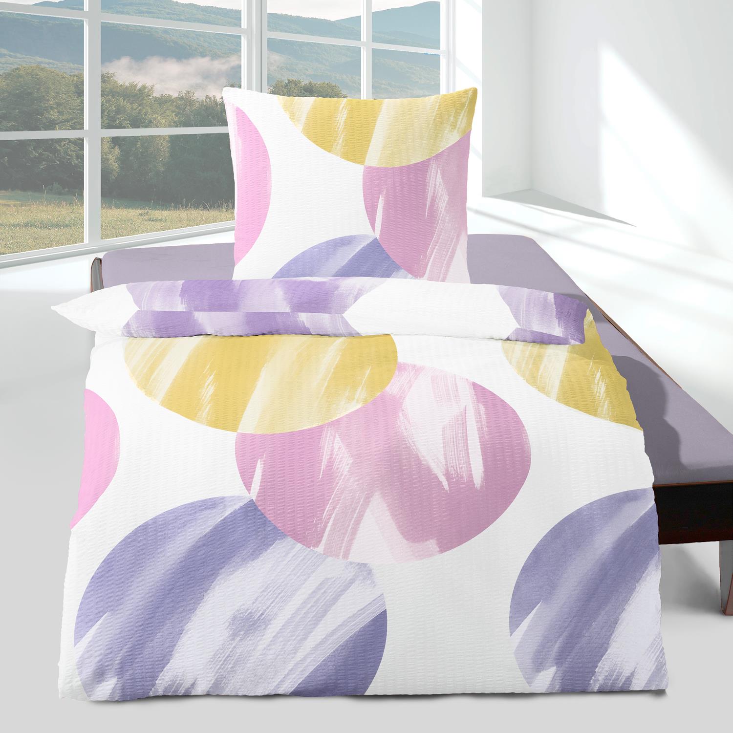 Bettwäsche Bierbaum Seersucker 4113-70 Kreise Lila Beere Gelb 135x200