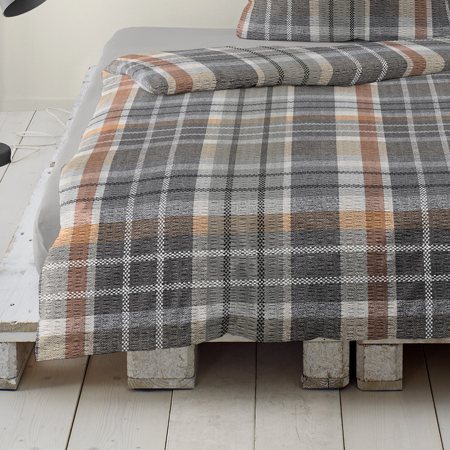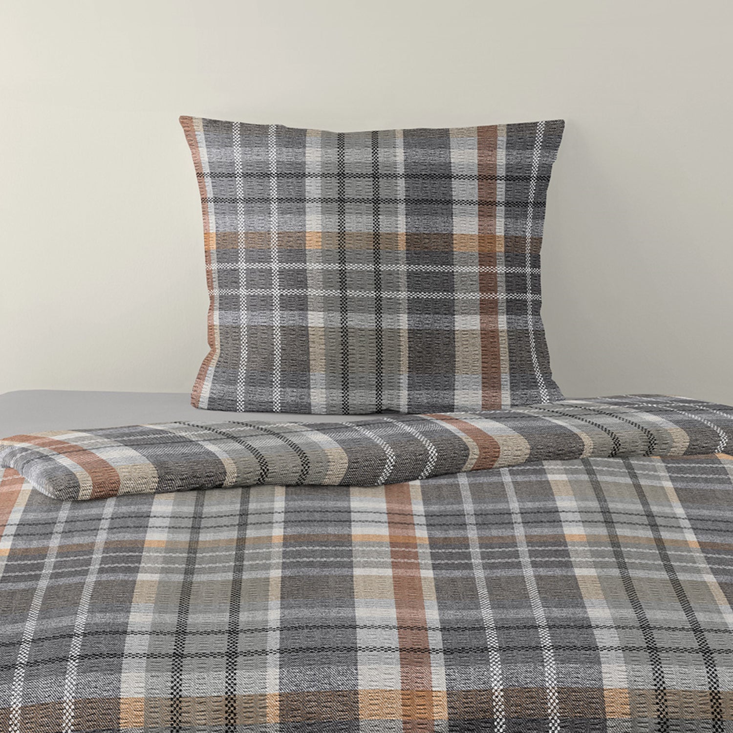 Bettwäsche Bierbaum Seersucker 4149-10 Kariert grau braun 135x200