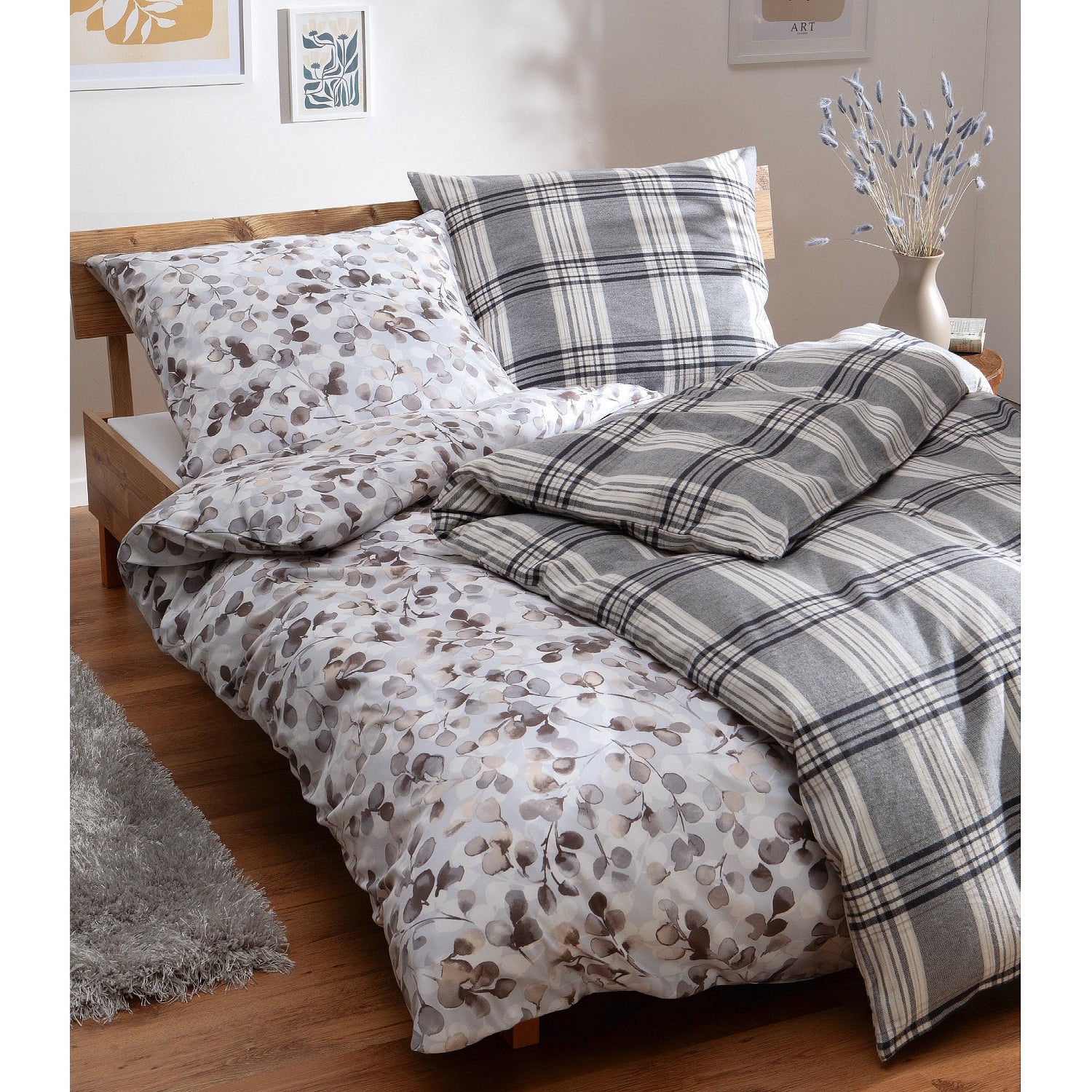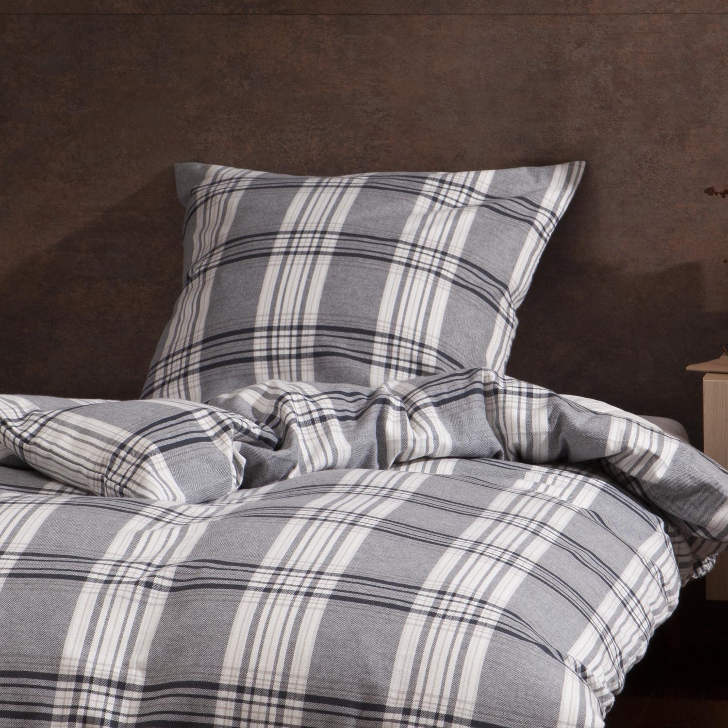 Bettwäsche Dormabell Flanell Karo 21260 hellgrau Kariert 135x200
