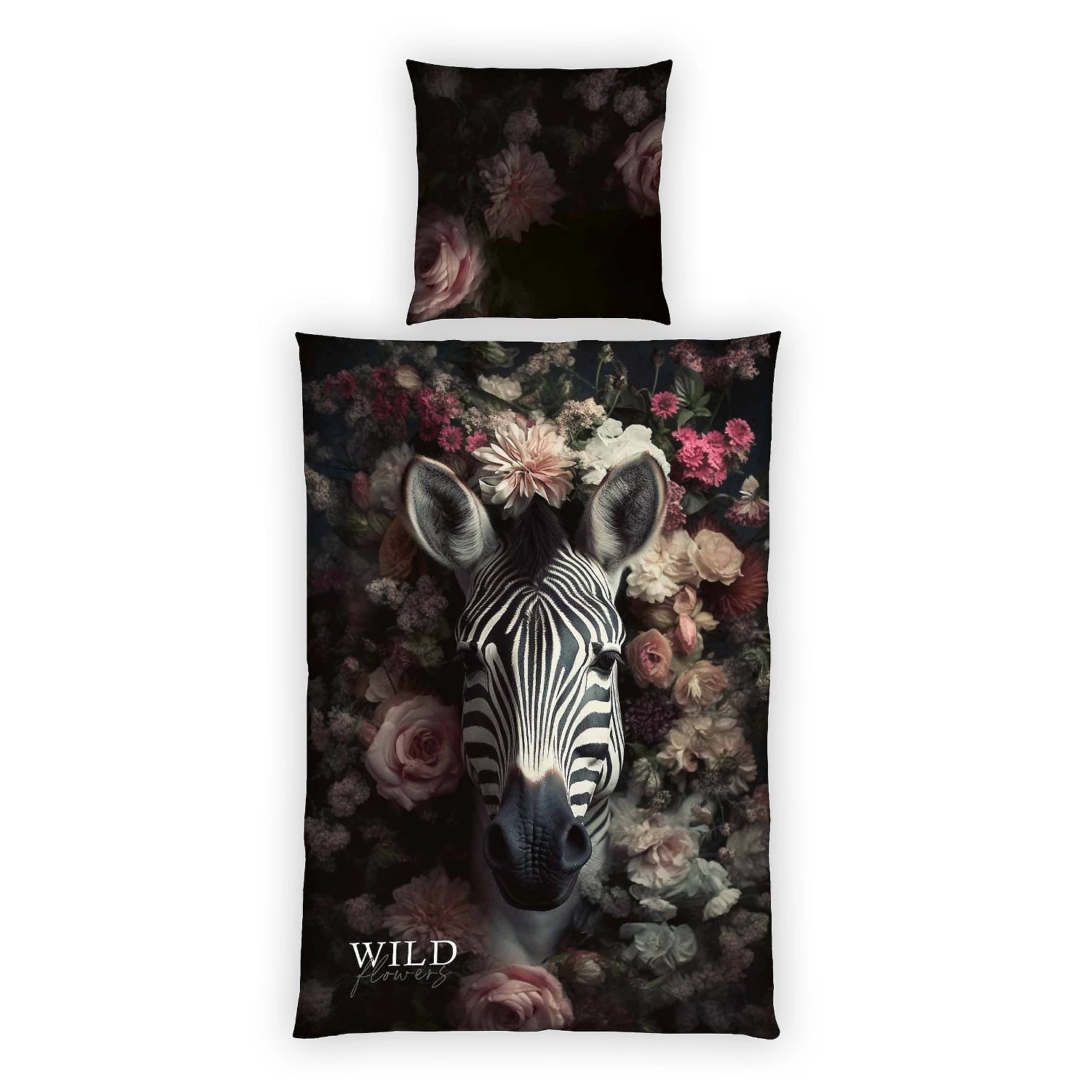 Bettwäsche Wild Flowers Zebra Animalprint 100% Baumwolle 135x200