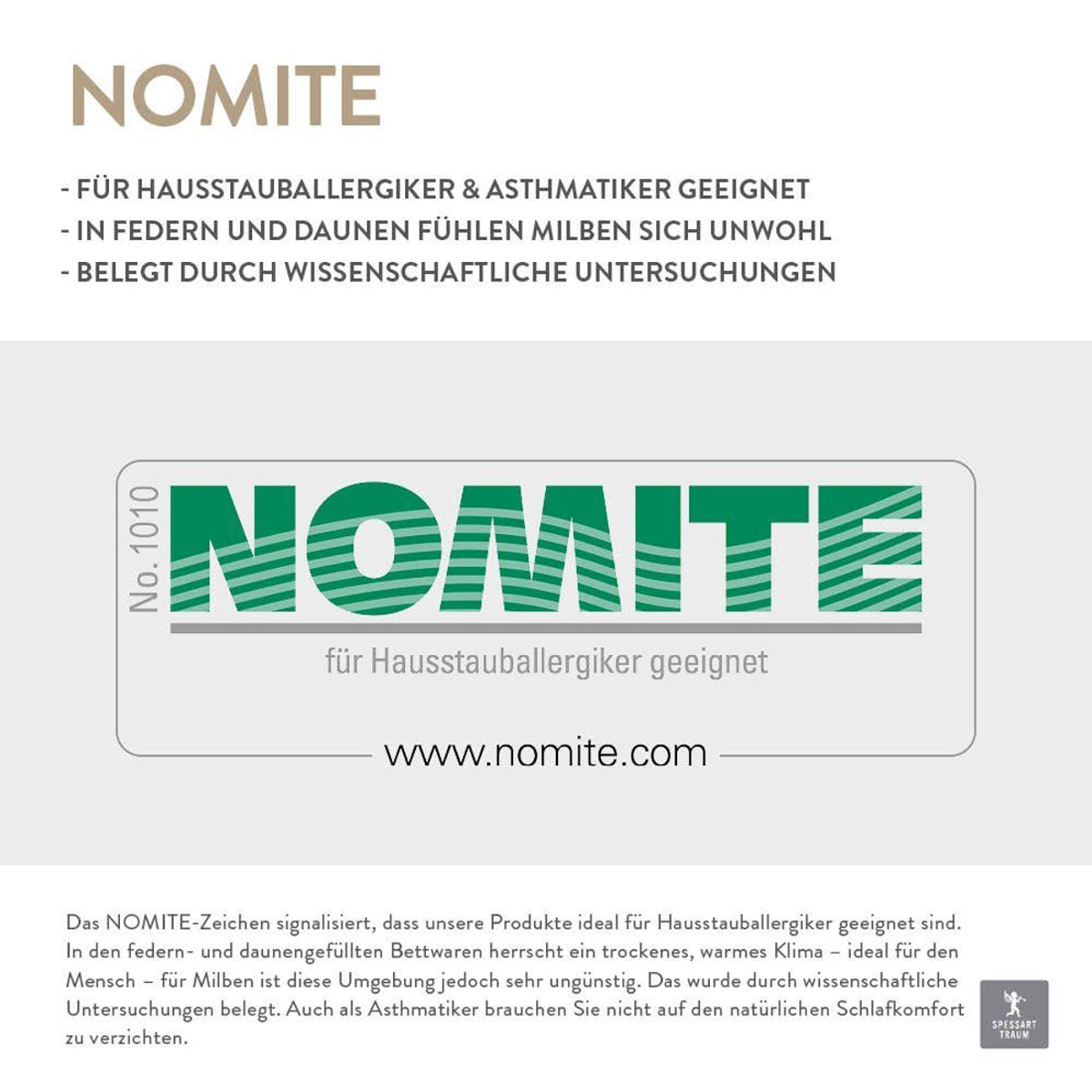 Das Gewebe der von Nomite ® Bettwaren ist daunendicht und so engmaschig gewebt, dass Hausstaubmilben nicht in das Innere der Bettwaren gelangen. Somit können auch Hausstauballergiker die vielen Vorzüge von Daunen und Federn genießen.
