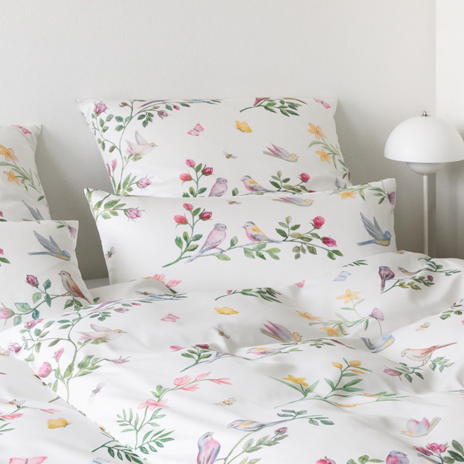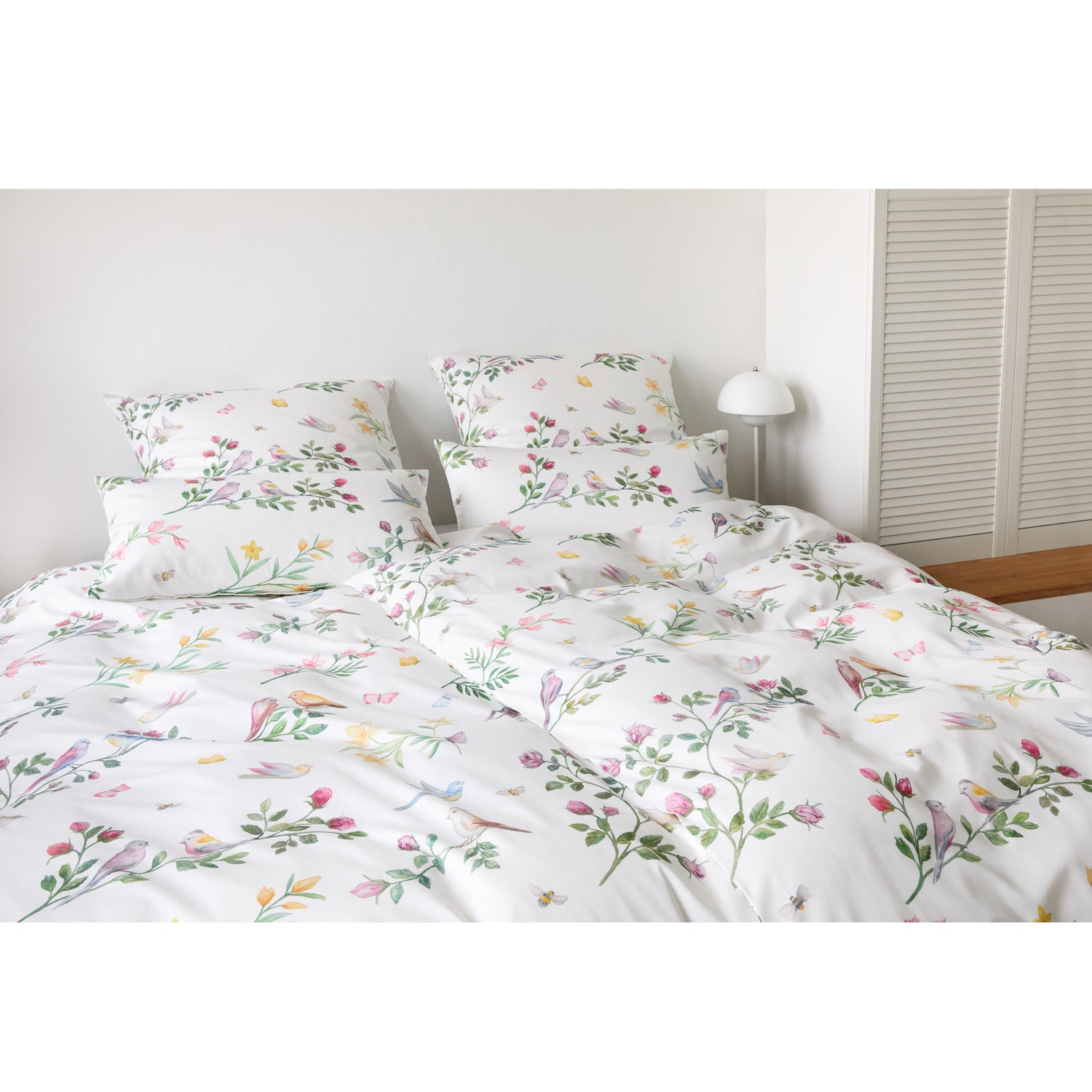 Elegante Mako Satin Bettwäsche Songbird 24525-0 Vögel Weiß 135x200