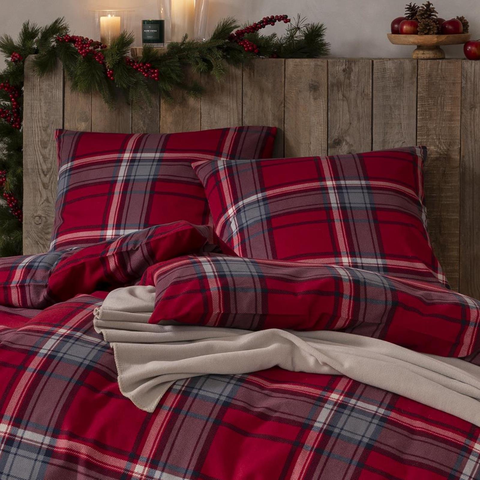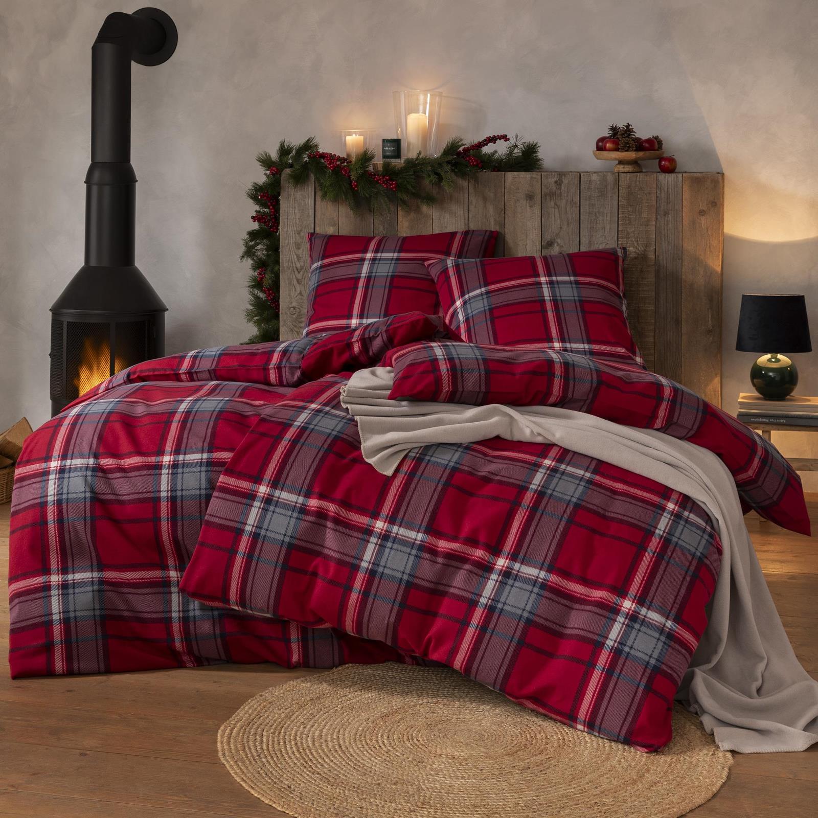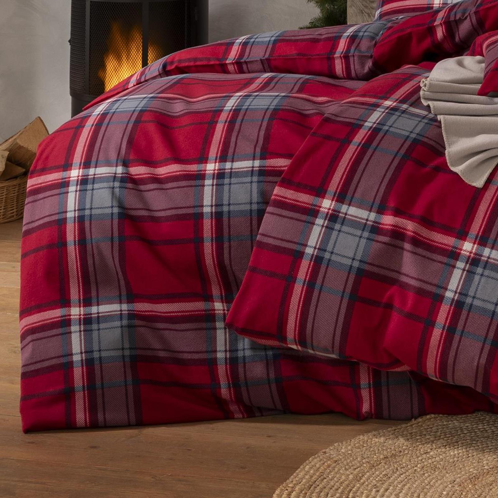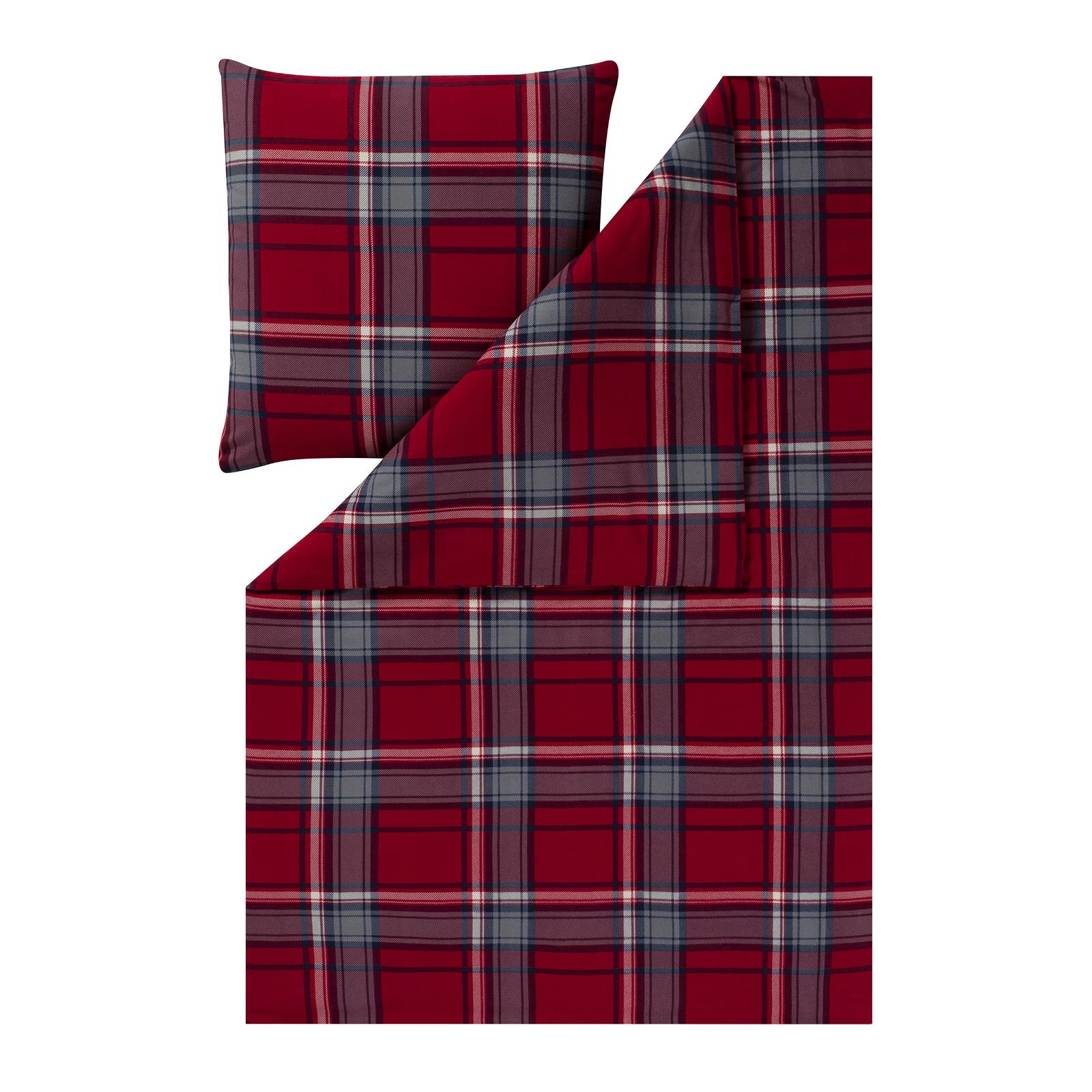 Estella Flanell Bettwäsche Hannes 4459-460 Kariert Rot Grau 135x200