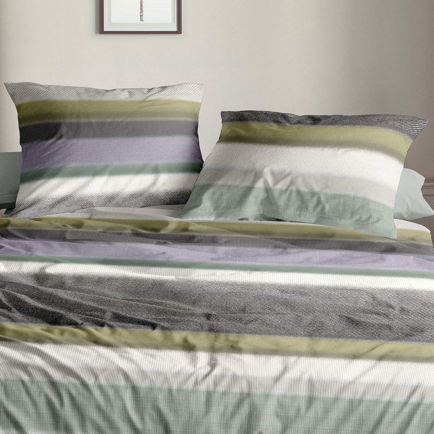 Irisette Biber Bettwäsche Koala 8617-30 Streifen Grau Grün 135x200