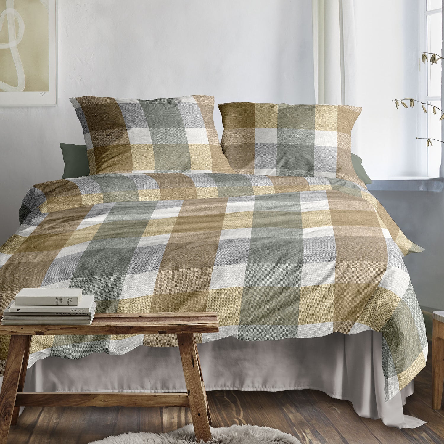 Irisette Biber Bettwäsche Koala 8622-40 Kariert Grün Gelb Grau 135x200