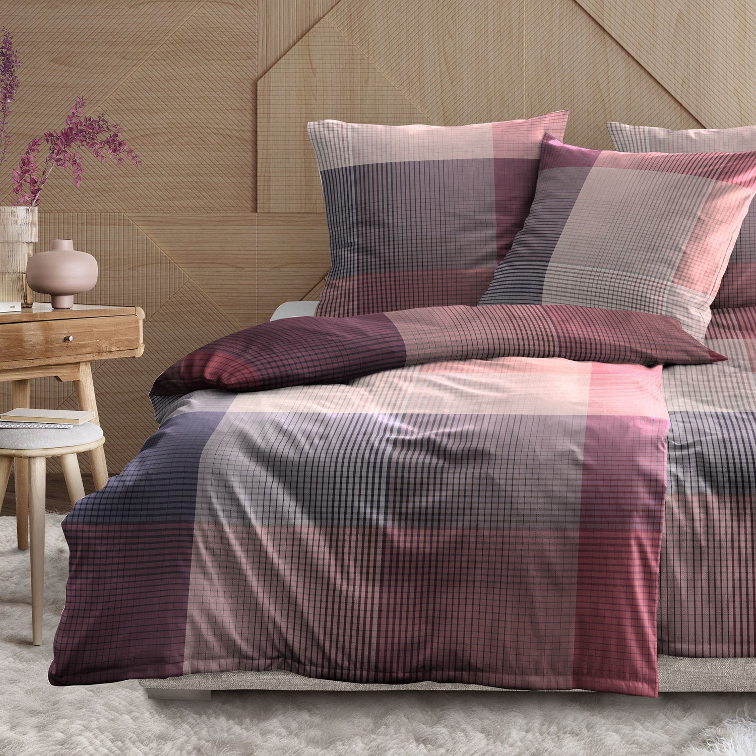 Irisette Mako Satin Bettwäsche Wave 8637-60 Kariert Rot Beere 135x200