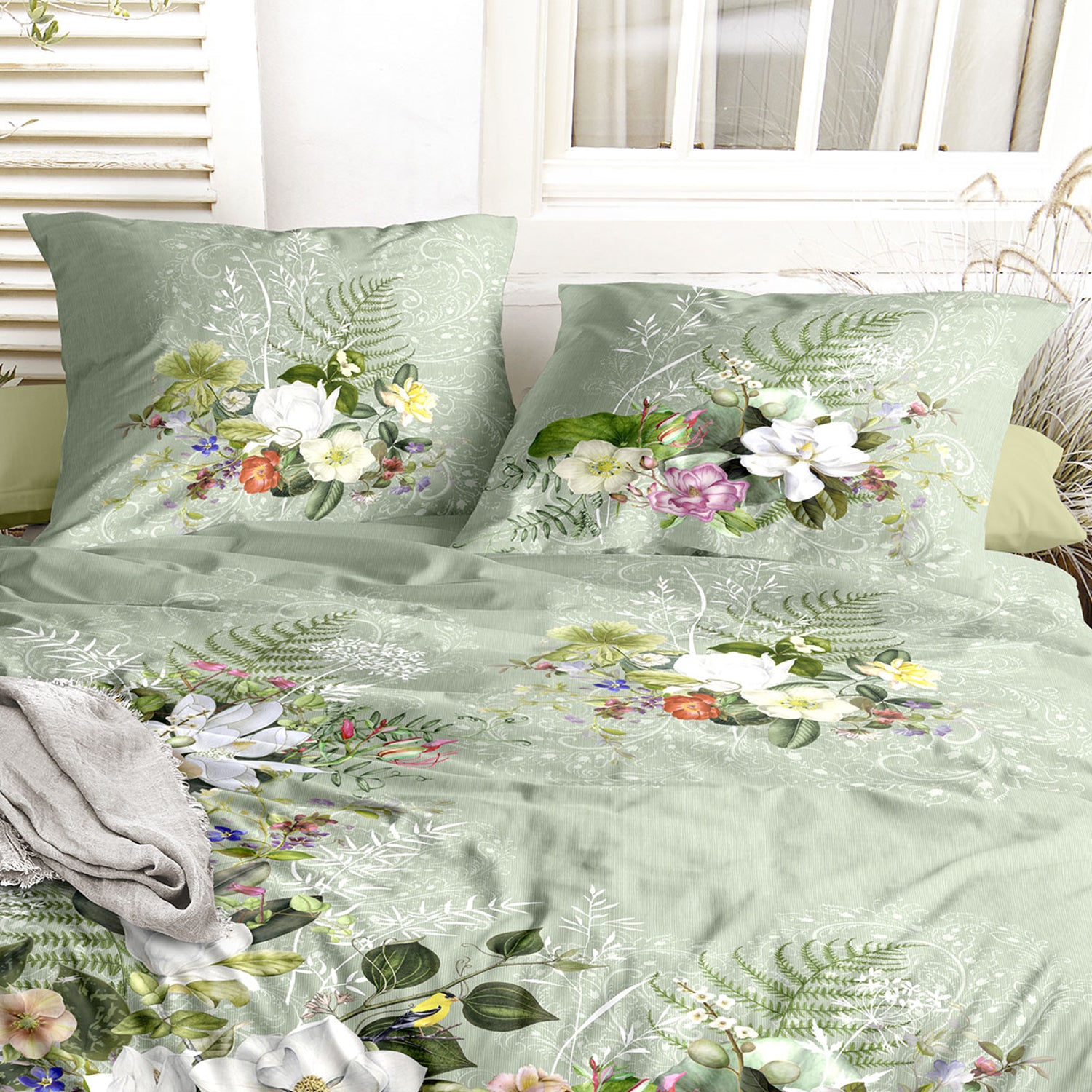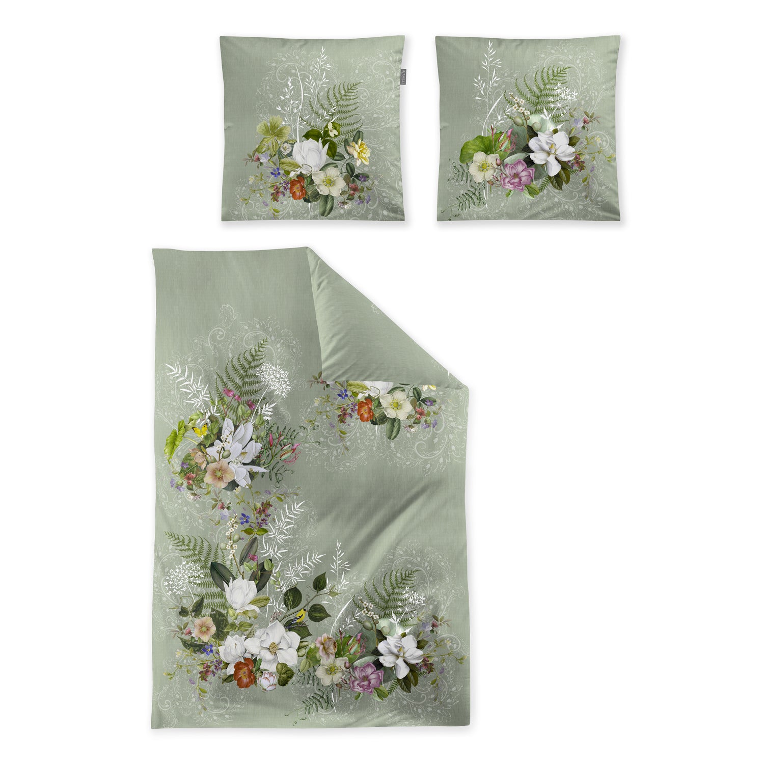 Irisette Mako Satin Bettwäsche Wave 8711-30 grün Blumenranken 135x200