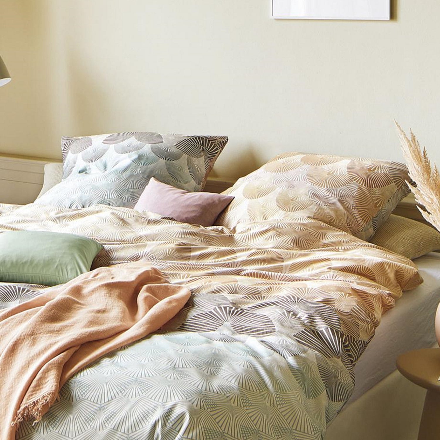 Irisette Seersucker Bettwäsche Easy 8384-90 Fächer orange blau 135x200