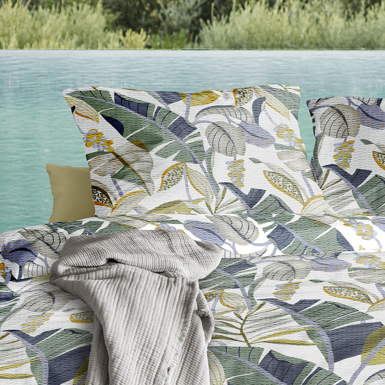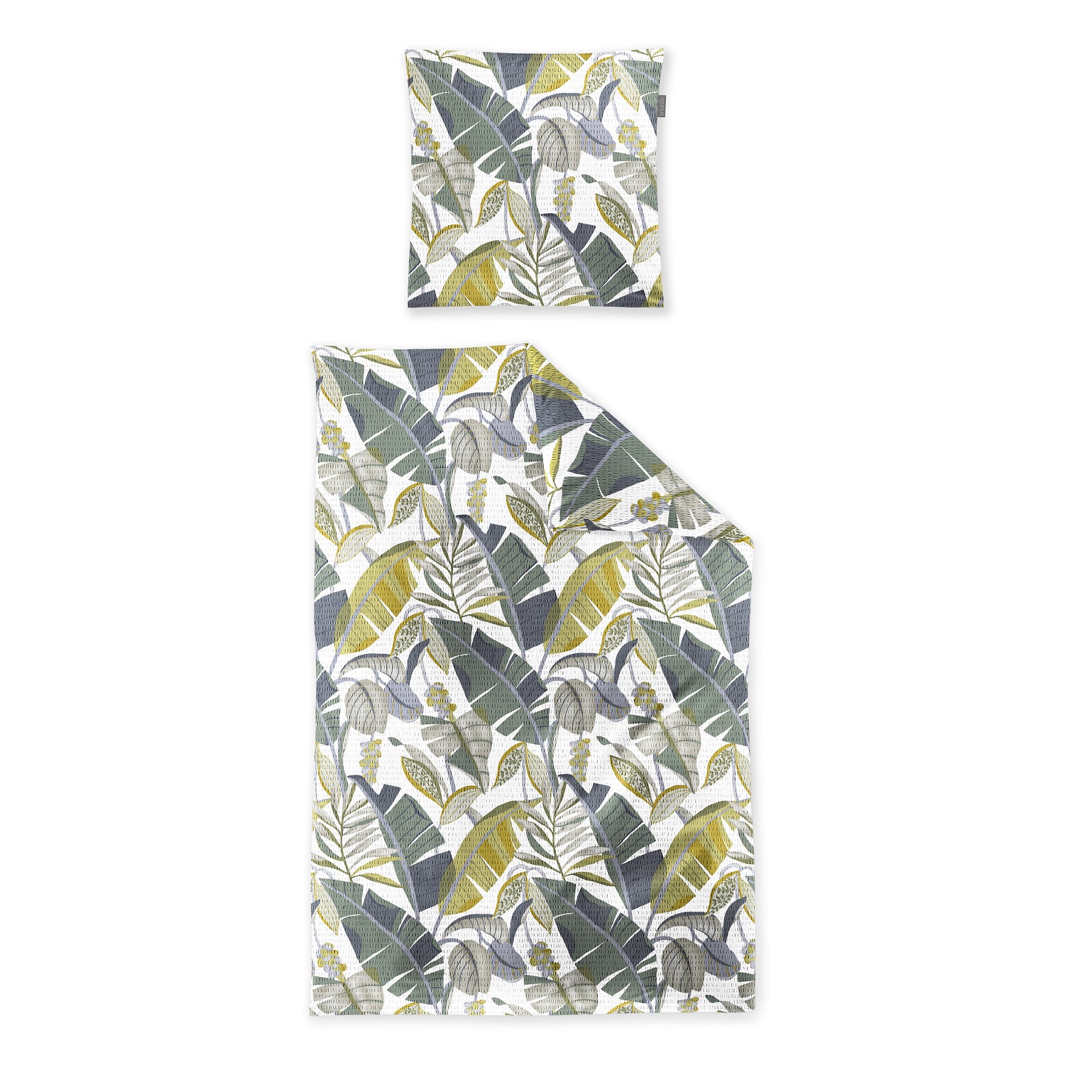 Irisette Seersucker Bettwäsche Easy 8697-20 Blätter blau grün 135x200
