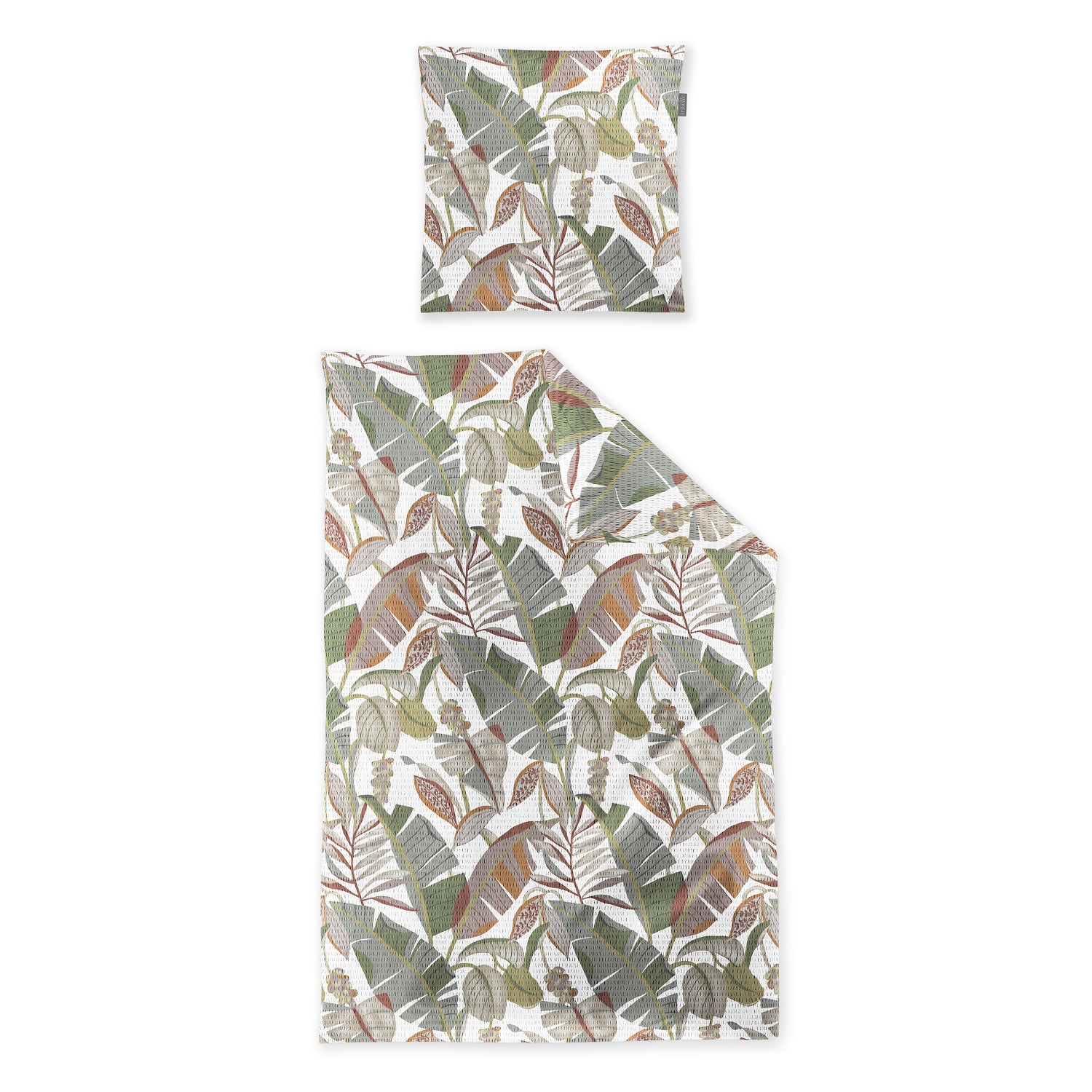 Irisette Seersucker Bettwäsche Easy 8697-90 Blätter grau rot 135x200