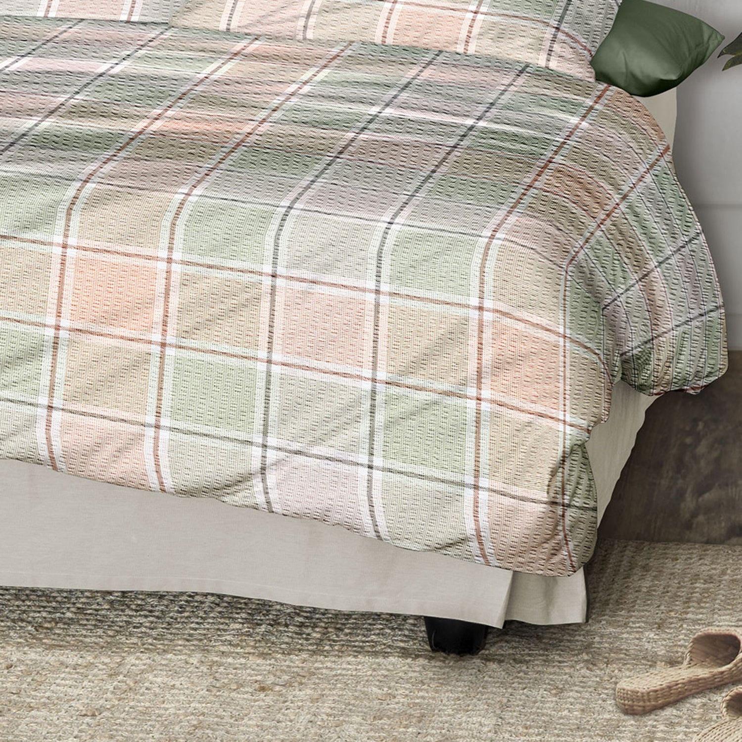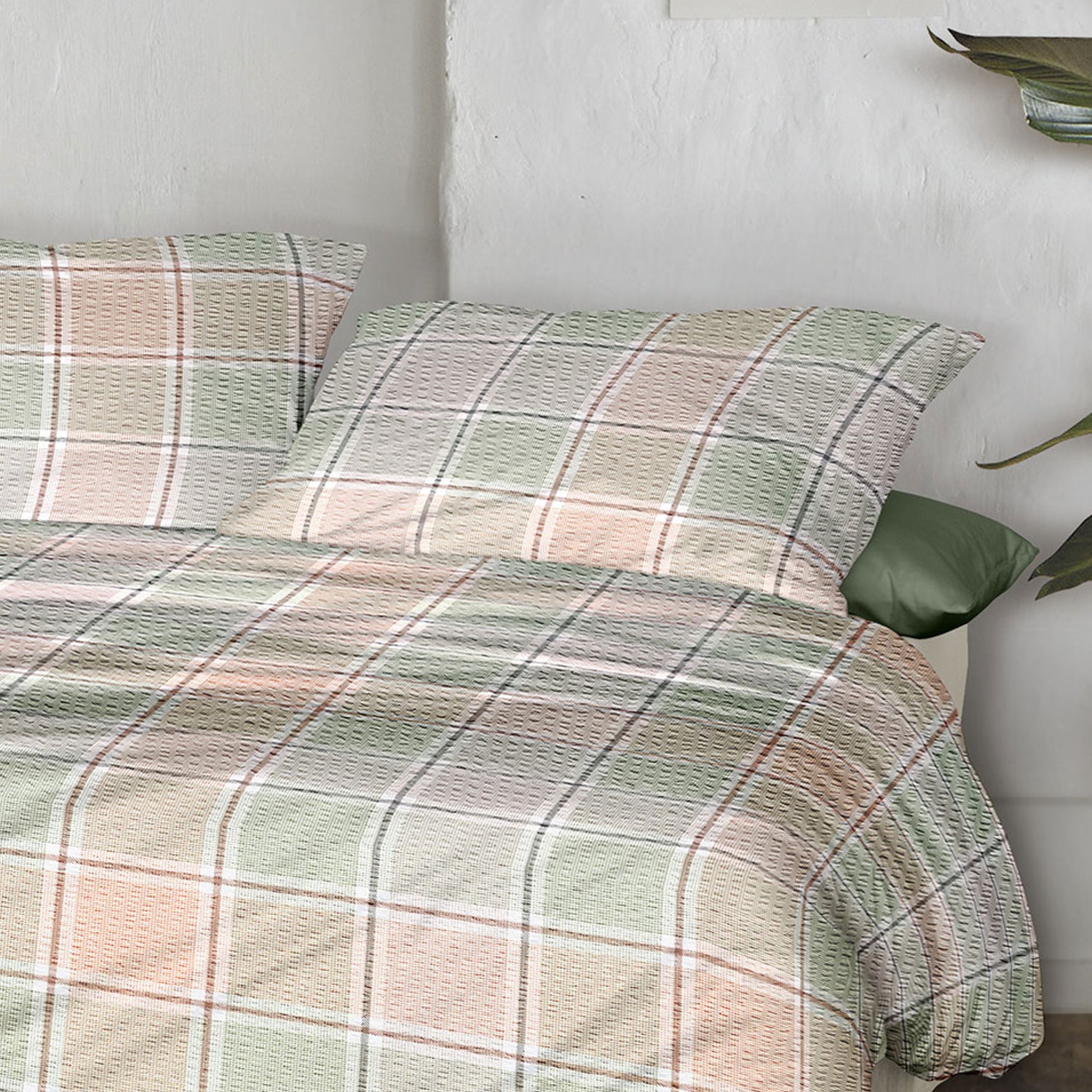 Irisette Seersucker Bettwäsche Easy 8715-90 Kariert grün lachs 135x200