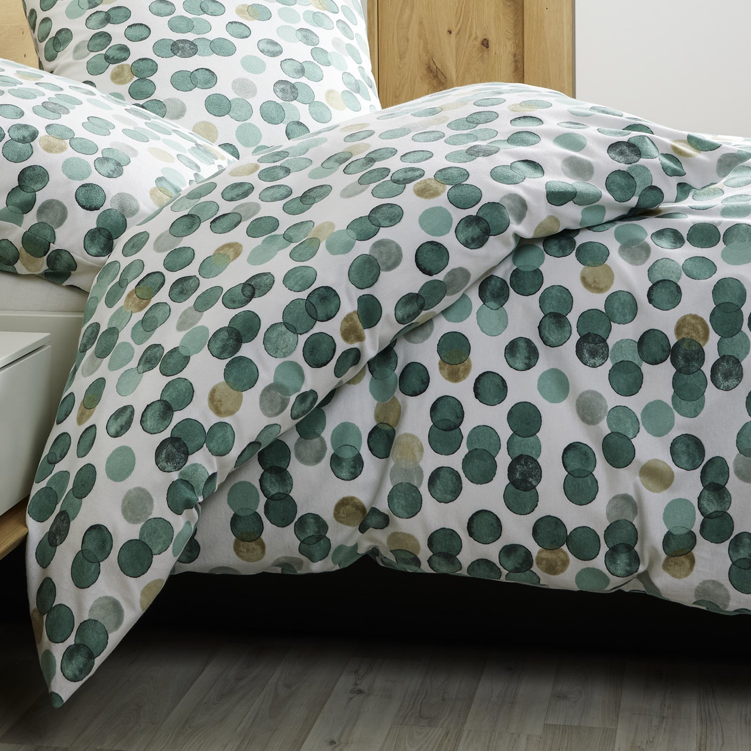 Janine Feinbiber Bettwäsche Davos 65176-06 Punkte Grün Sand 135x200