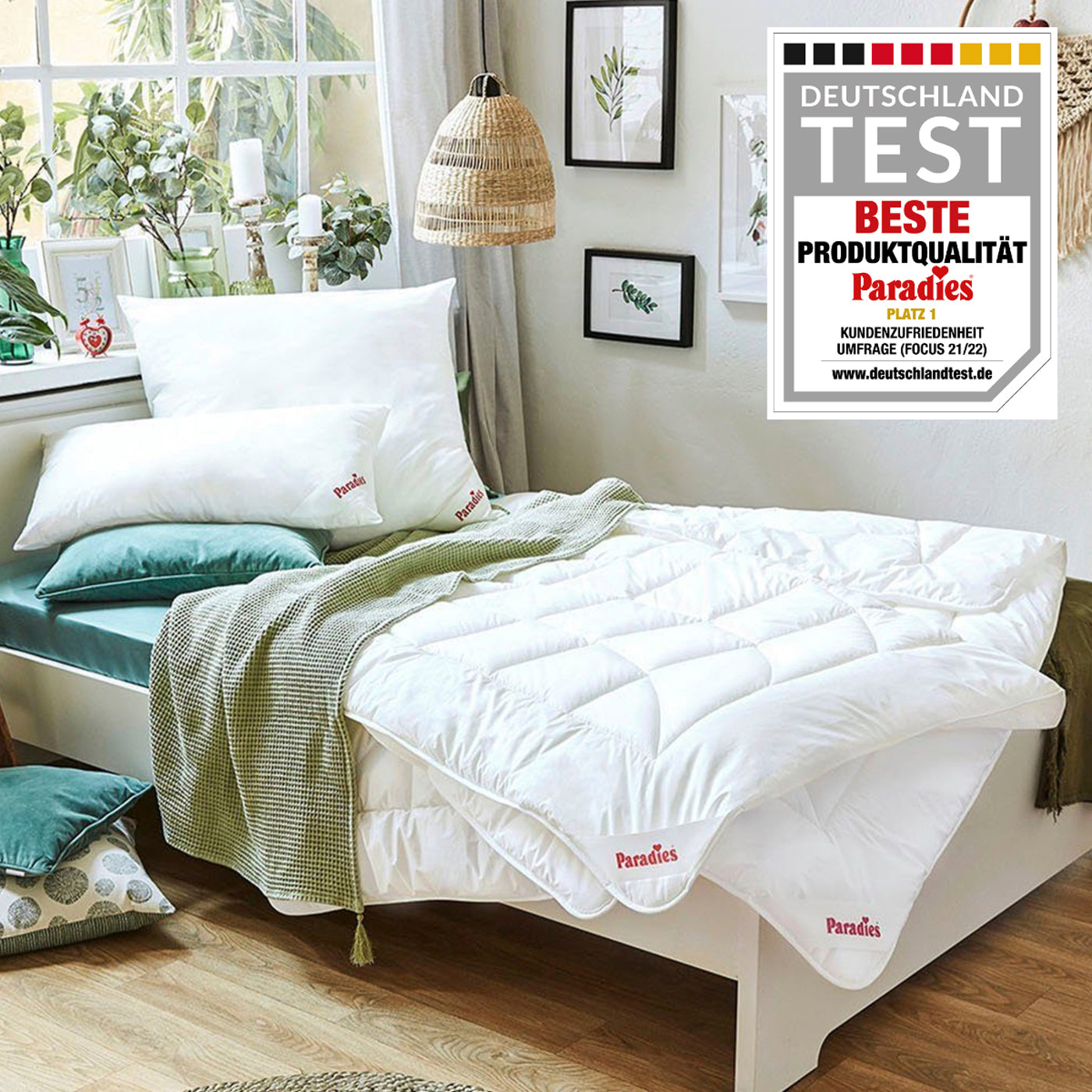 - Füllung: Paradies Softcell Fasertechnologie, 50% recycelt. (80% Polyester, 20% Lyocell aus nachhaltigem Anbau).