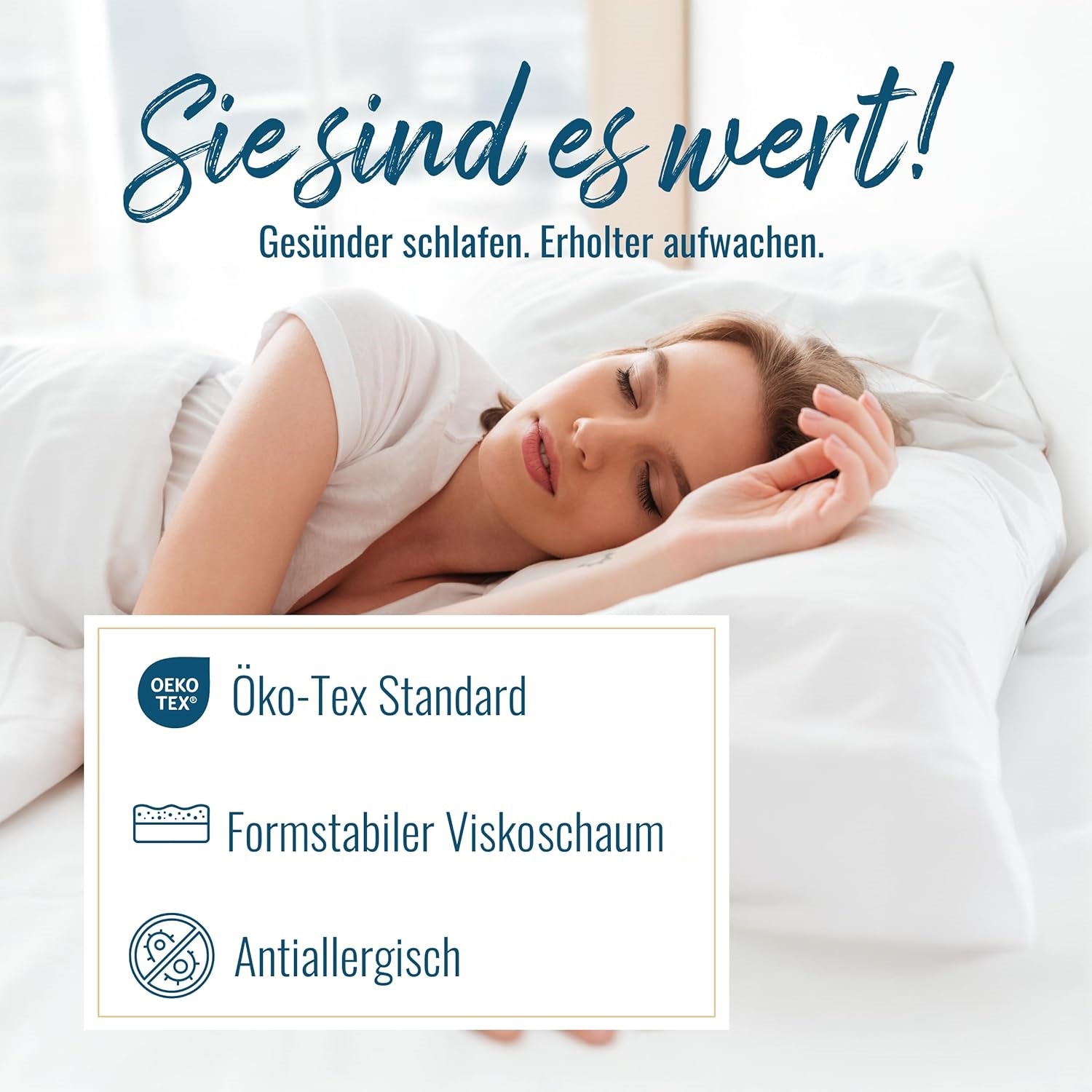 Durch den druckentlastenden Formpur® Hybridschaum, passt sich dieses Nackenstützkissen exakt den Konturen Ihres Körpers an. Die Halswirbelsäule wird sanft gestützt und angenehm ergonomisch entlastet. Nacken- und Schultermuskulatur entspannen und einem erholsamen Schlaf steht nichts mehr im Wege. Der Lamellenschnitt an der Oberfläche des Kerns sorgt für perfekte Belüftung und guten Feuchtigkeitstransport. Der Mako-Jersey Bezug aus 100% Baumwolle ist waschbar bei 60° und trocknergeeignet.